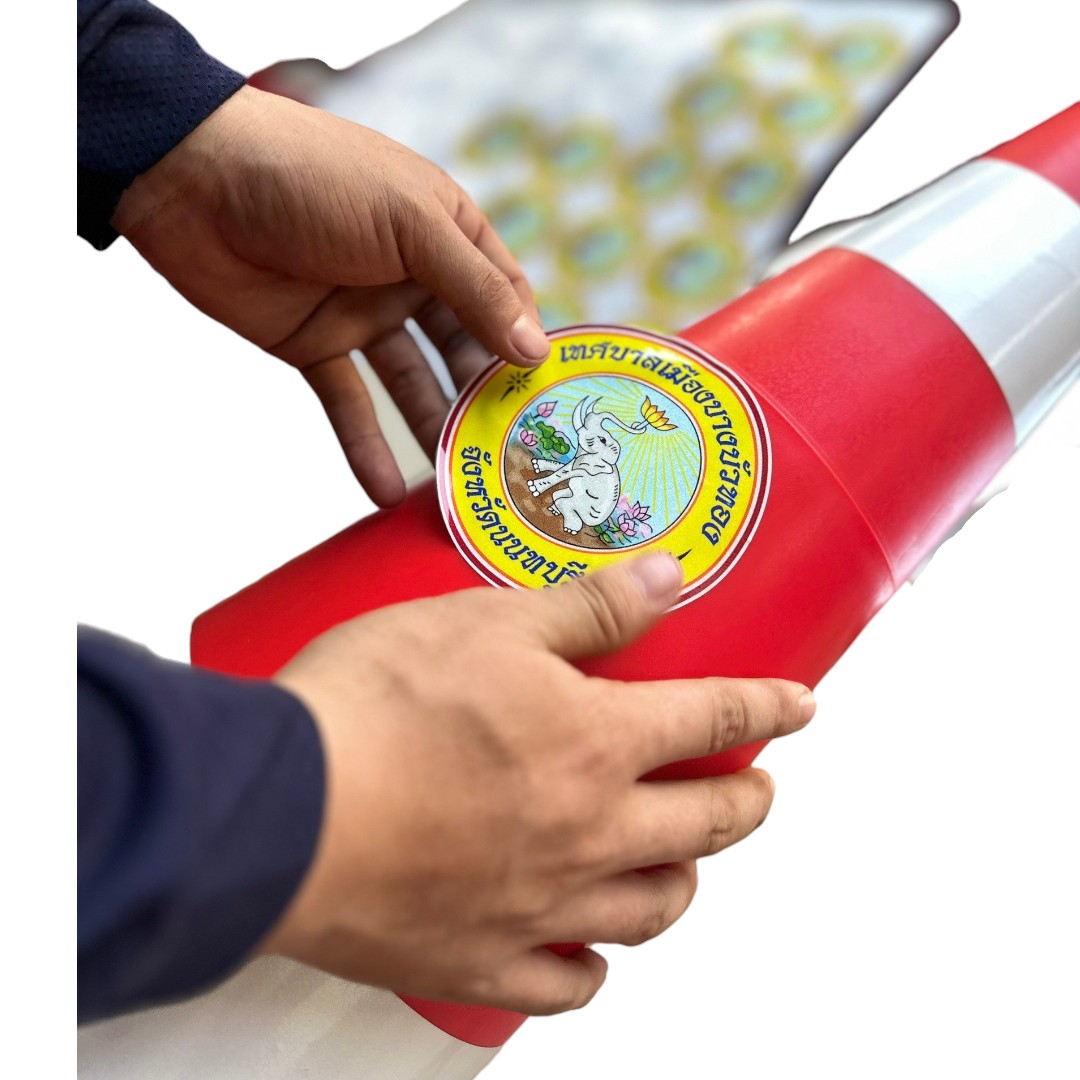 ด้วย สติกเกอร์โลโก้สะท้อนแสงติดกรวยจราจร