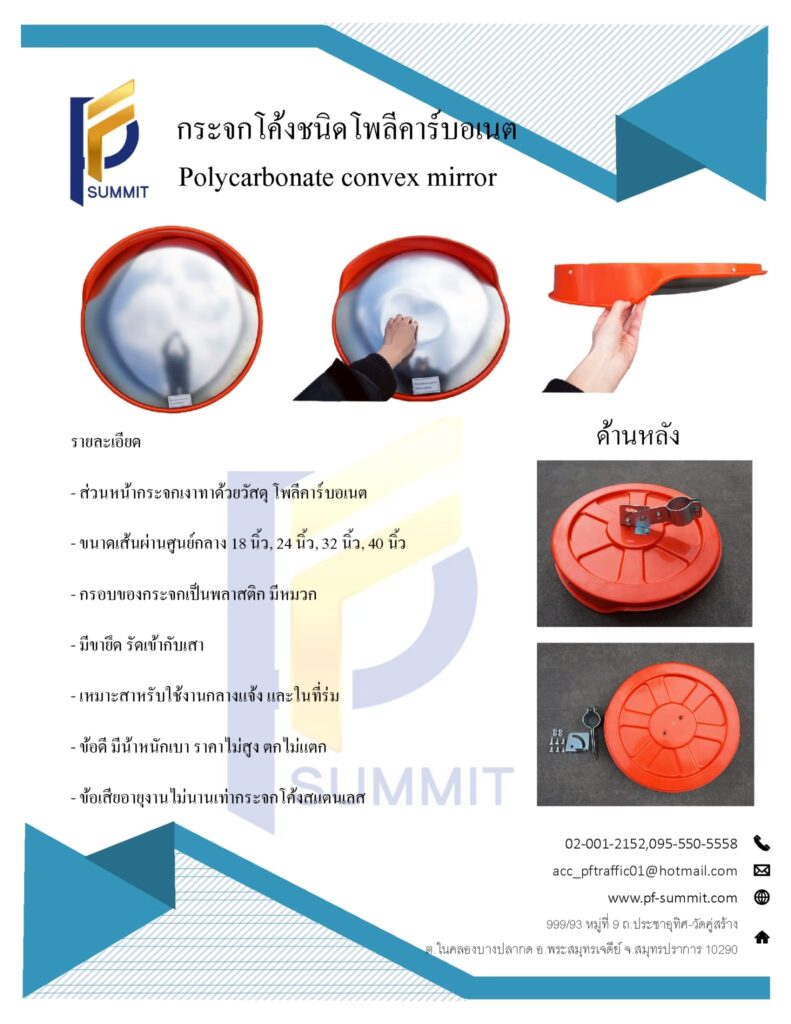 - ตัวกระจกโค้ง ที่ทำจากวัสดุโพลีคาร์บอเนต ตกไม่แตกยุบตัวได้