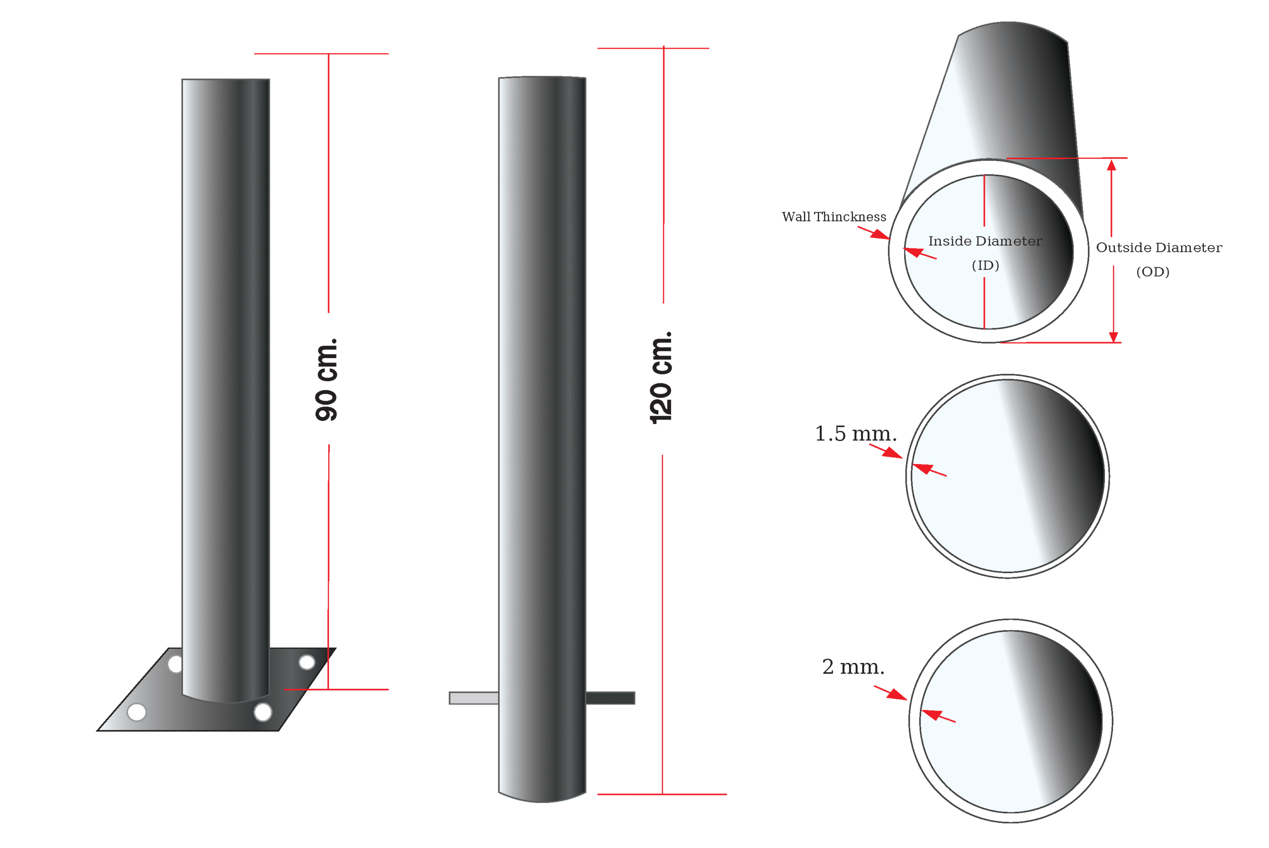 • ลงดิน สูง 120 cm. (มีเดือย2ฝั่ง)