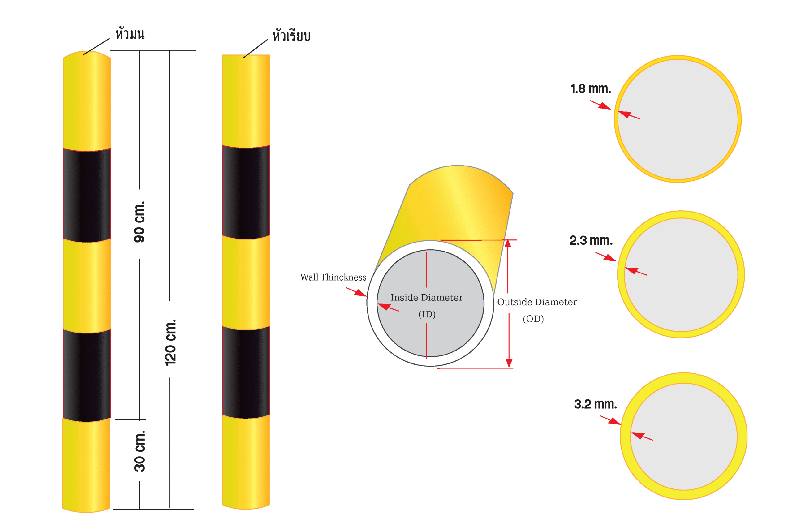 เสาเหล็กกันชน สีเหลือง-ดำ (แบบลงดิน)
