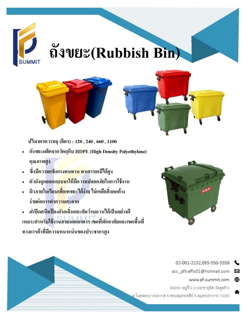 - ถังขยะฝาปิดมิดชิด ลดกลิ่น ลดเชื้อโรค
