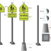 ชุดเสาพร้อมป้ายระวังทางแยก Intersection warning sign
