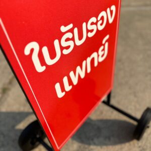 ป้ายตั้งพื้น สูง 90 cm. (แบบมีล้อ) | Sign Stand with Wheels