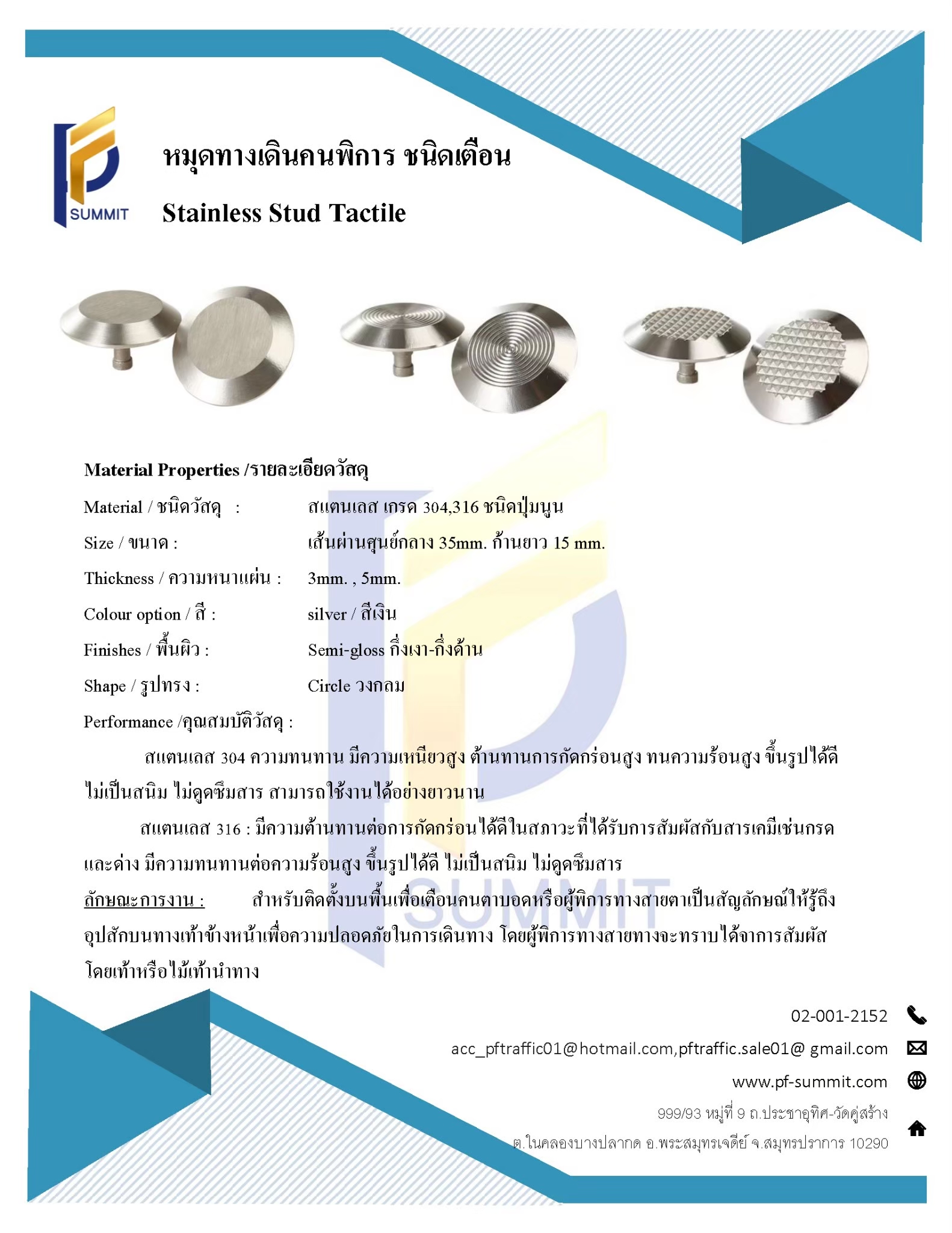 ปุ่มสแตนเลสทางเดินคนพิการ (แบบปุ่ม) | Tactile Paving
