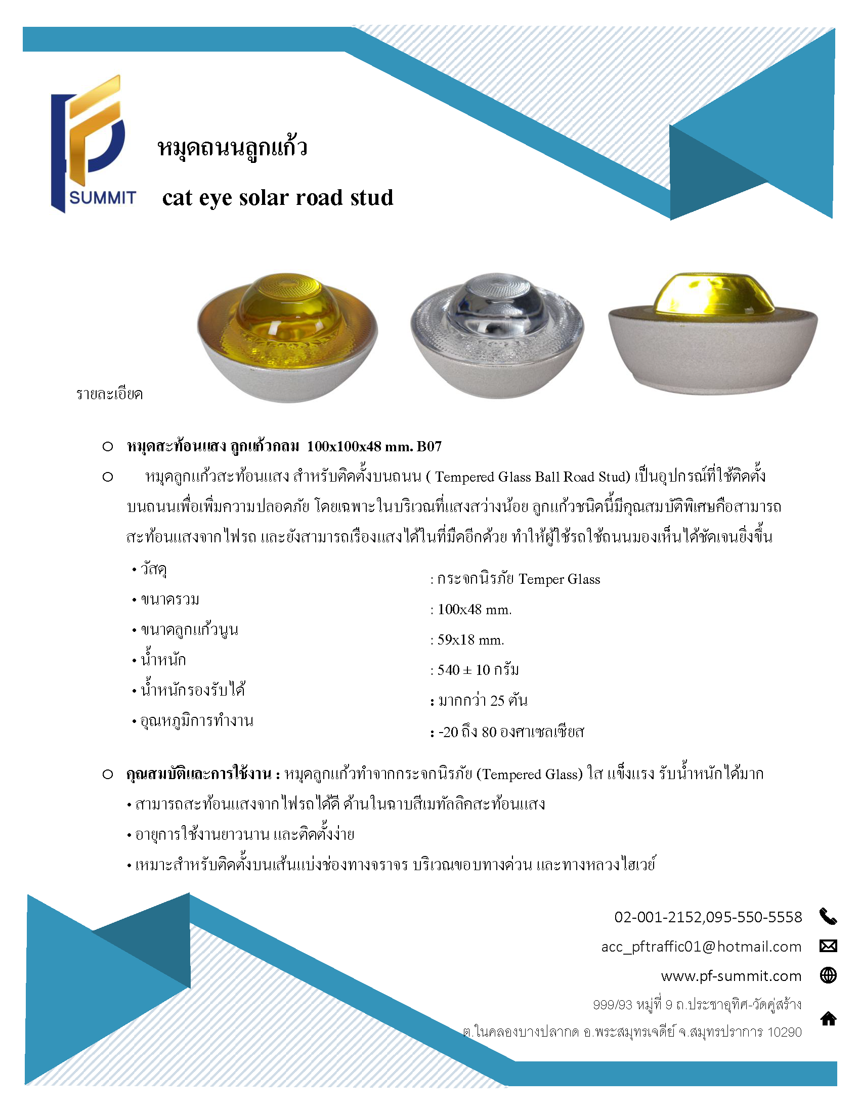 หมุดลูกแก้วสะท้อนแสง 360 องศา (กระจกนิรภัย)