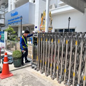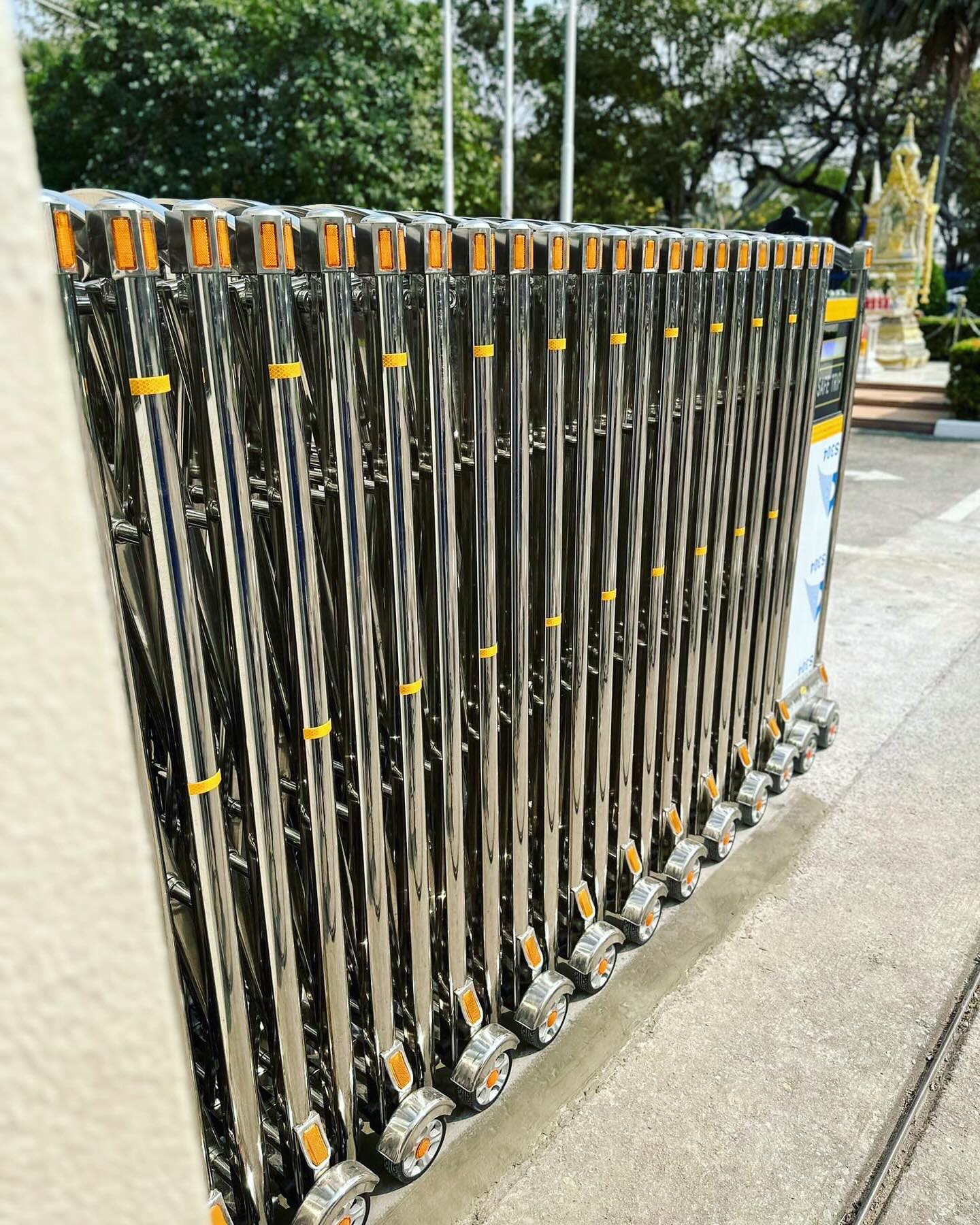 โครงสร้างแข็งแรง ทนทาน ผลิตจากสแตนเลส ไม่เป็นสนิม เหมาะกับการใช้งานทั้งในและนอกอาคาร ยืดหดได้ตามต้องการ ปรับขนาดความยาวได้ สะดวกเมื่อต้องการกั้นพื้นที่ชั่วคราว หรือพื้นที่ไม่แน่นอน เคลื่อนย้าย มาพร้อมล้อเลื่อนล็อกได้ ใช้งานคล่องตัวเมื่อต้องเปลี่ยนตำแหน่ง ใช้งานได้หลากหลายสถานที่ เช่นงานอีเวนต์,อาคารสำนักงาน,ลานจอดรถ,โรงงาน,ห้างฯ และสถานที่ราชการ ช่วยจัดระเบียบและควบคุมคนเข้าออก เหมาะสำหรับที่ที่ต้องการความเป็นระเบียบ หรือควบคุมฝูงชน ภาพลักษณ์ดูเรียบร้อย มืออาชีพ วัสดุสแตนเลสให้ความรู้สึกสะอาด ทันสมัย และน่าเชื่อถือ