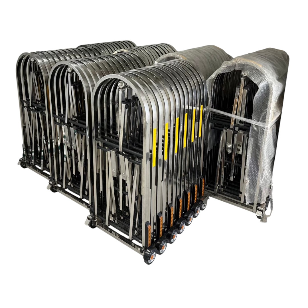 โครงสร้างแข็งแรง ทนทาน ผลิตจากสแตนเลส ไม่เป็นสนิม เหมาะกับการใช้งานทั้งในและนอกอาคาร ยืดหดได้ตามต้องการ ปรับขนาดความยาวได้ สะดวกเมื่อต้องการกั้นพื้นที่ชั่วคราว หรือพื้นที่ไม่แน่นอน เคลื่อนย้าย มาพร้อมล้อเลื่อนล็อกได้ ใช้งานคล่องตัวเมื่อต้องเปลี่ยนตำแหน่ง ใช้งานได้หลากหลายสถานที่ เช่นงานอีเวนต์,อาคารสำนักงาน,ลานจอดรถ,โรงงาน,ห้างฯ และสถานที่ราชการ ช่วยจัดระเบียบและควบคุมคนเข้าออก เหมาะสำหรับที่ที่ต้องการความเป็นระเบียบ หรือควบคุมฝูงชน ภาพลักษณ์ดูเรียบร้อย มืออาชีพ วัสดุสแตนเลสให้ความรู้สึกสะอาด ทันสมัย และน่าเชื่อถือ