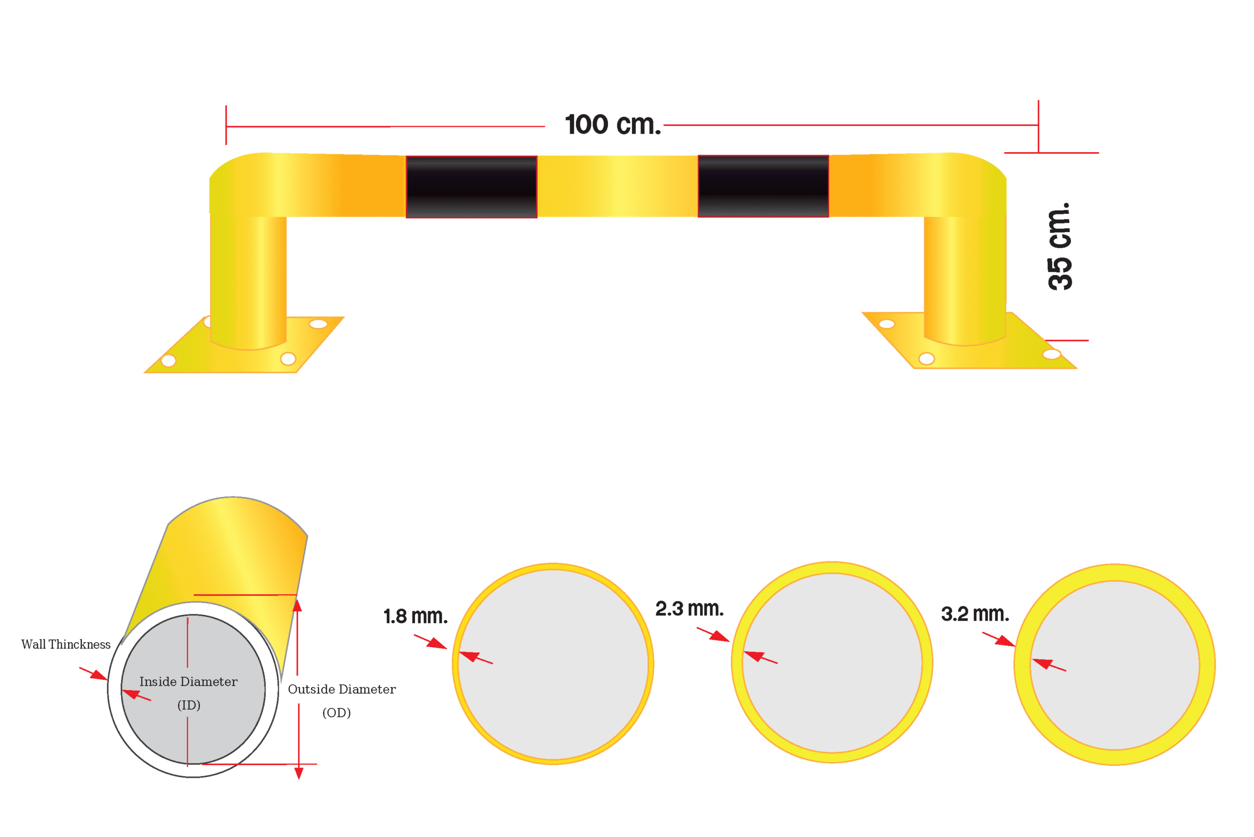 ราวเหล็กกันชน 100x35cm. เหลือง-ดำ