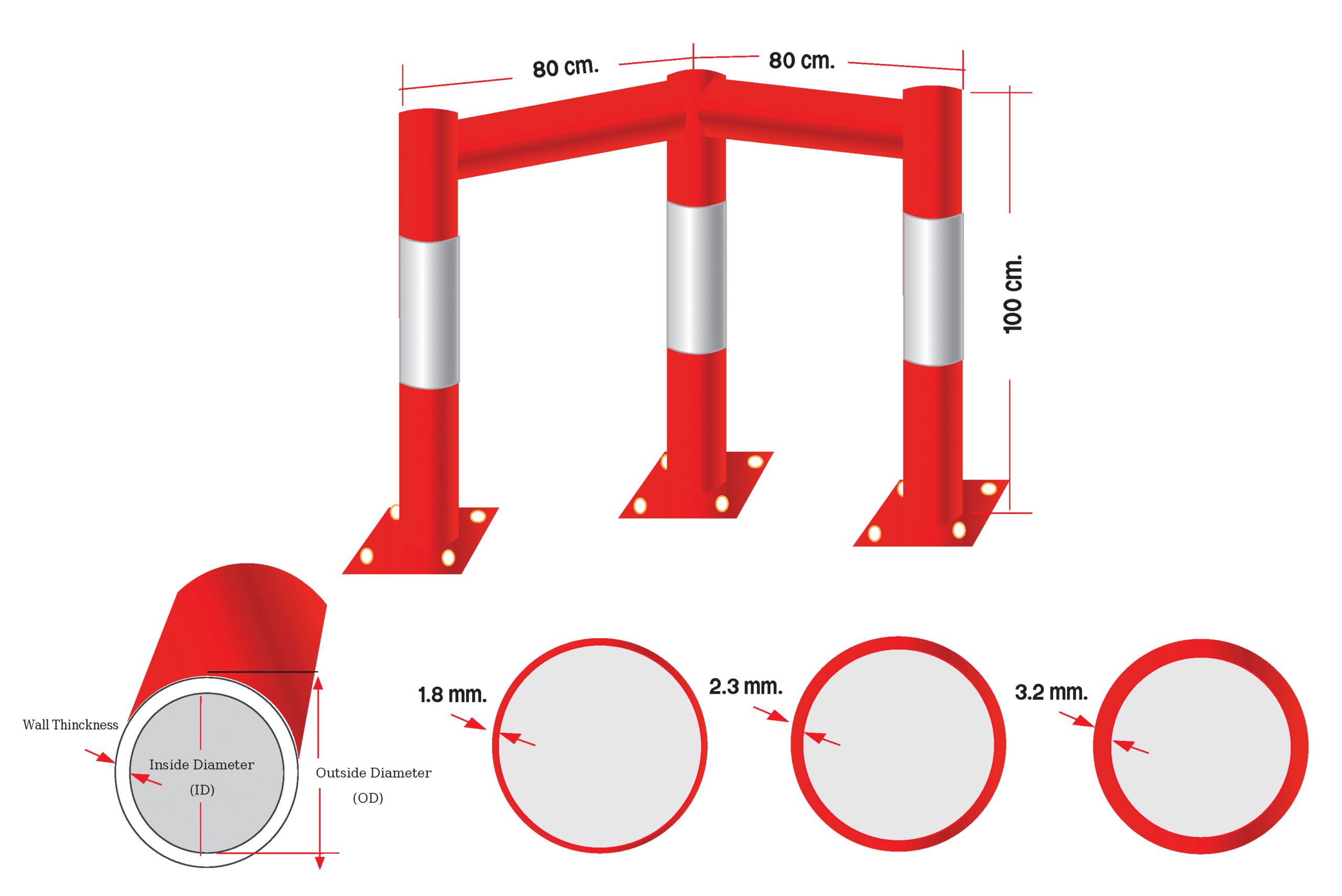 ราวเหล็กกันชน 80x80x100cm. แดง-ขาว (ทรงฉาก)